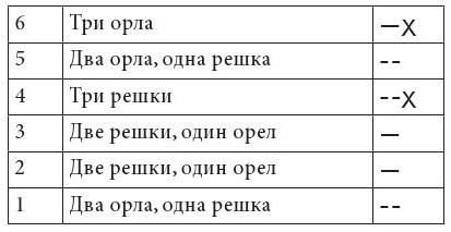 При каждом бросании трех монет мы получаем одну черту гексаграммы (записывая их снизу вверх).