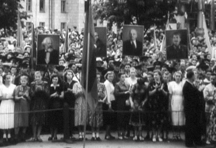 Минчане на митинге во время открытия обелиска Победы 4 июля 1954 г. Кадр из документального фильма