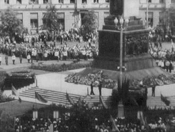 Возложение минчанами цветов к монументу Победы сразу после его открытия. Кадр из документального фильма