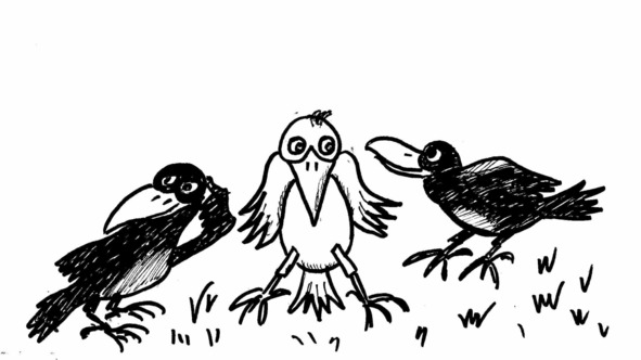 Идет по улице Федот,На голове его корона.Федот, Федот, убор не тот,Ты в нем как белая ворона.«Белая ворона». Такое выражение применяется тогда, когда нужно сказать про человека, который чём-либо резко выделяется среди окружающих его людей и не похож на них.