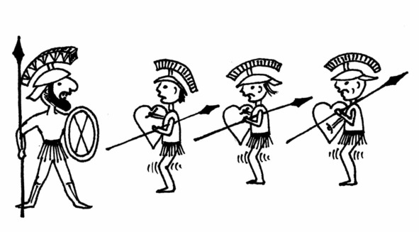 Это выражение связано с поэмой «Илиада» древнегреческого поэта-сказителя Гомера, в частности, с описанием того впечатления, какое произвёл на греков троянский герой Гектор, бесстрашный воин и доблестный полководец, похожий на разъяренного льва: «Дрогнули все, и у каждого в ноги отважность упала».
