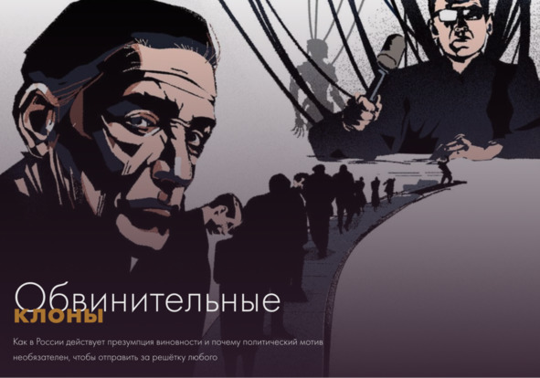 Спецпроект «Обвинительные клоны» объясняет, как работает презумпция виновности с помощью личных историй, цифр и экспертных комментариев.