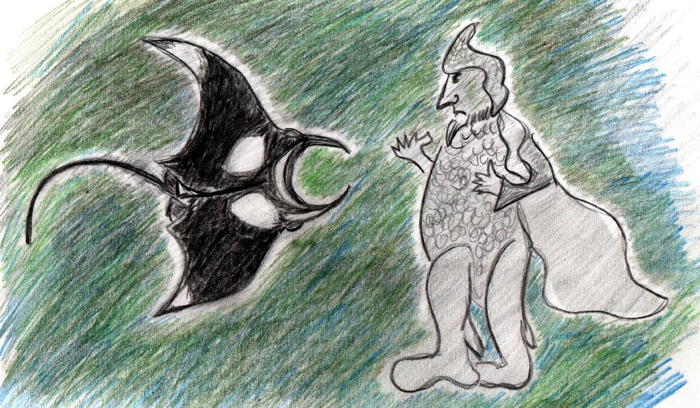 – Уморила, ой, уморила! Подружка, вот ты что творишь?! Если морской царь помрет от того, что захлебнулся, так, сколько воплощений потом отмываться?! Засмеют!! Ты, что и впрямь не знаешь, кто такая манта?