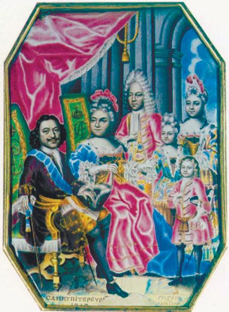 Мусикийский Г. С. 1716. Семейный портрет Петра I. Эмаль. ГИМ