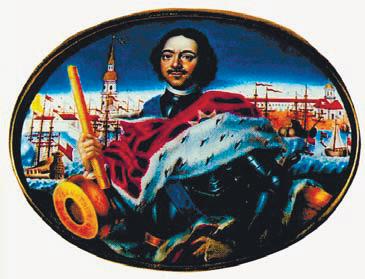 Мусикийский Г. С. Портрет Петра I на фоне Петропавловской крепости и Троицкой площади в Петербурге. 1723. Финифть. ГЭ