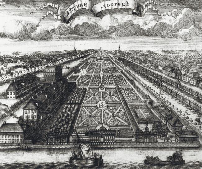 Зубов А. Ф. 1717. Вид Летнего сада. Офорт