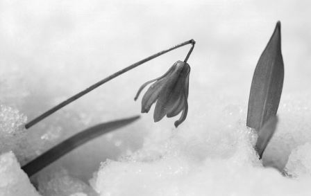– Надо же! Какая красота растет среди грязного снега. Давай сорвем и нашим отнесем?