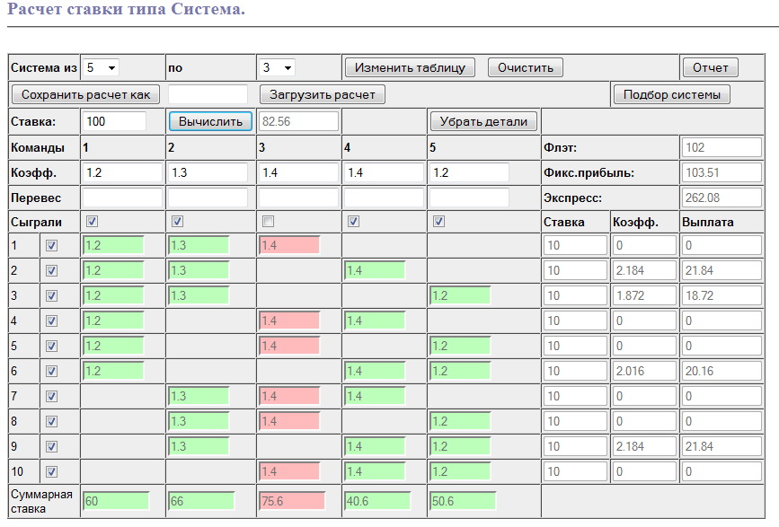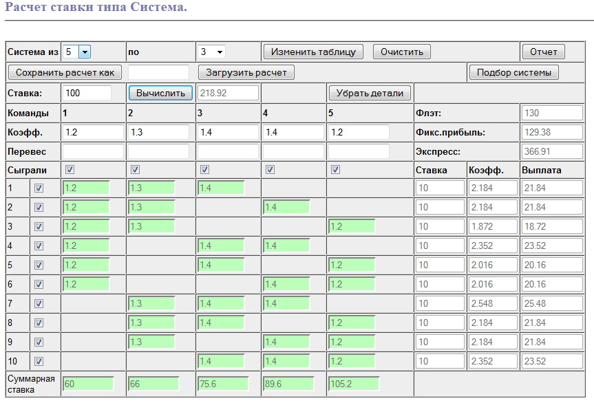 Математически при нулевом перевесе как экспресс так и система не имеет никаких ни преимуществ ни недостатков по сравнению с ординарами. Поэтому такую последовательную систему я описал лишь с целью восполнить пробел в наборе комбинационных ставок, реализуемых последовательно. Но тем не мене, ряд нематематических преимуществ дает основание включить такой вариант системы в инструментарий опытного игрока. Тем более что для расчета плана последовательной системы сделан вариант программы расчета систем в наборе калькуляторов Sports Betting Lab.
