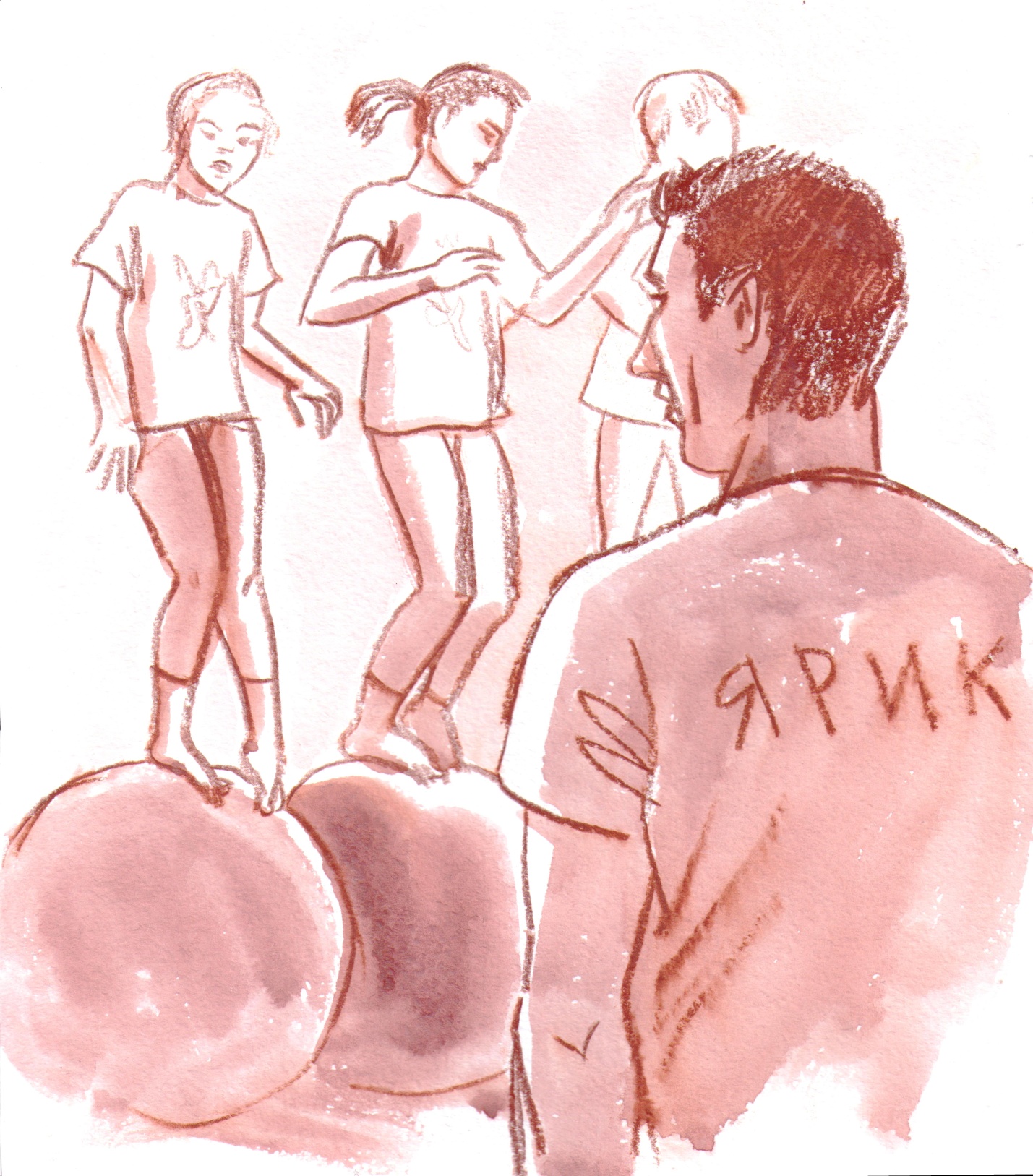 А я застеснялась и все никак не могла придумать свое движение. А тренер Ярик говорит: «Как тебя зовут?» А я говорю: «Ярослава». И заплела руки как будто в косичку – люди так делают, когда стесняются. И Ярик эти заплетенные руки сделал моим движением. И все стали показывать это движение, и делать вид, что они тоже стесняются.