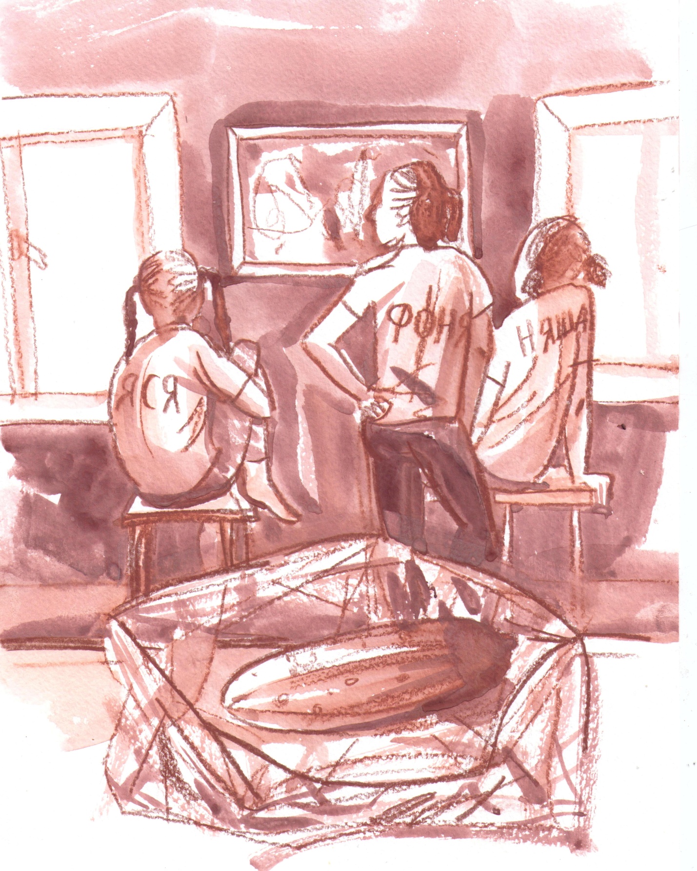 Я подошла к Алисе и говорю: «Иди, что-то покажу». И показала ей эту надпись. А потом я мы рассказали это тренеру Соне, и Соня все стёрла. Соня очень добрая, она восстановила справедливость. Мне нравится Соня. Она вообще классная.