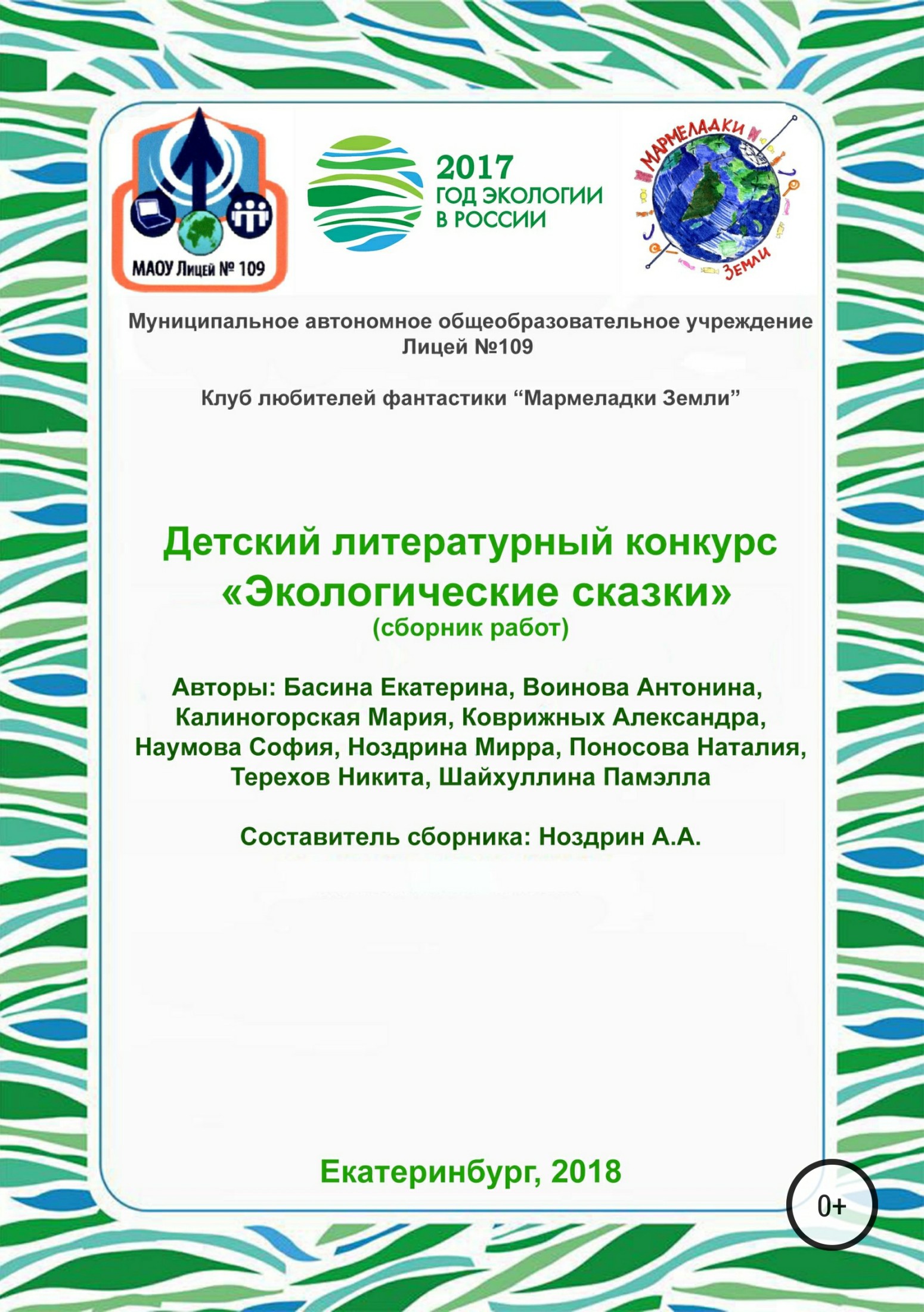 В рамках мероприятий, посвященных Году экологии, в МАОУ Лицей №109 города Екатеринбурга при содействии клуба любителей фантастики “Мармеладки Земли” был проведен Детский литературный конкурс «Экологические сказки».