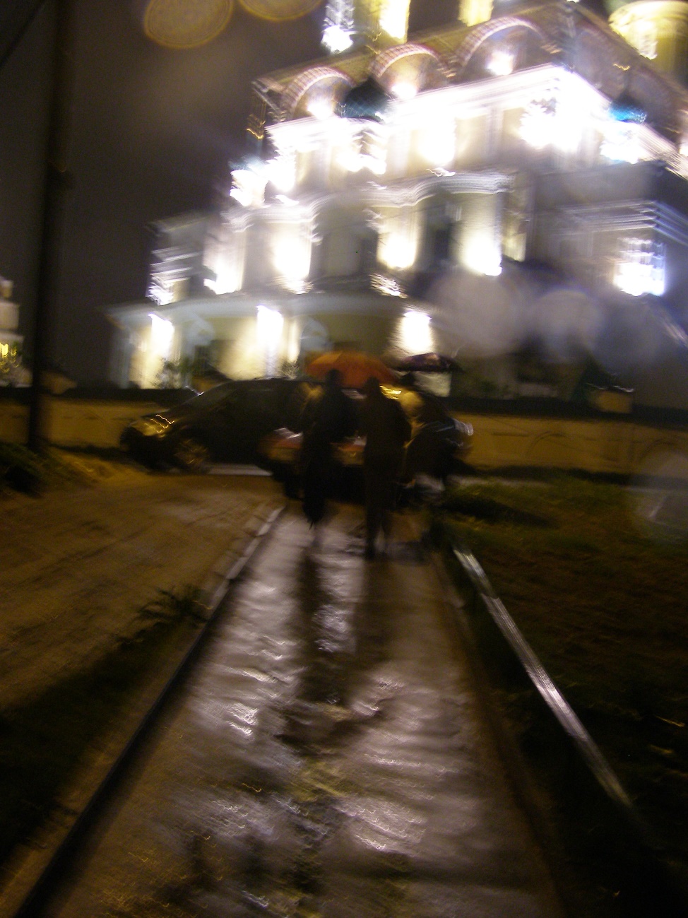 Вечер. Ливень. На асфальте дрожащее море огней.