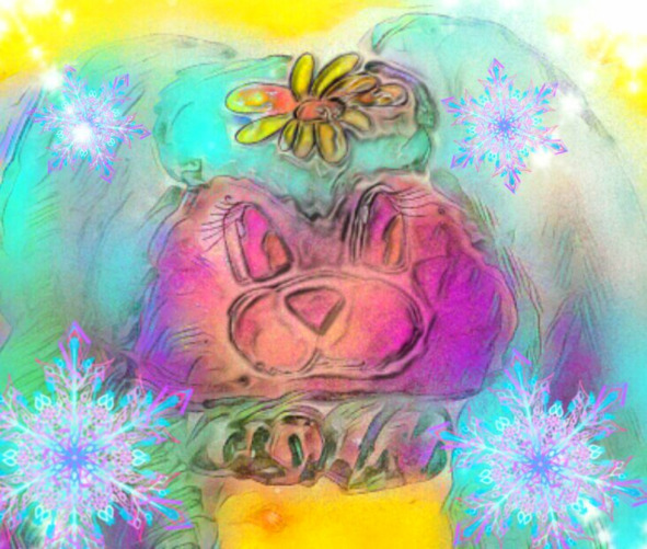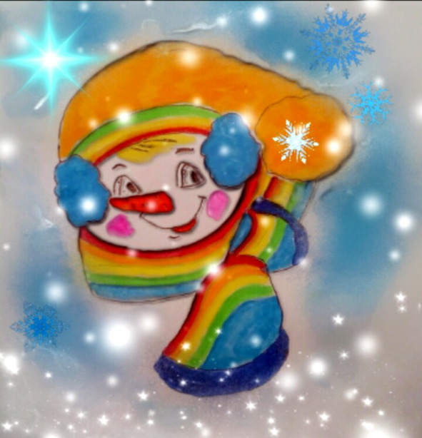 В мохнатой варежкеЦветной, махровой пряжиСнежок уютно поселился.На двор вошел мороз,И запахом еловымВокруг весь мир обогатился.Кружит метель не злая,Подаёт снежинки,Уже готовы три больших снежка.Намокли валенки,Простужены слегкаСнеговика морковка и ботинкиИз старого набитого платка.Чихает старичок,Ведерко на голове опрятно оправляя.Ему я шарф из радуги принес,Он теплый, но, дружище, не растает!Подлечит солнечный свой нос,И вновь улыбкой заиграетНа щёчках белых дедушка Мороз!