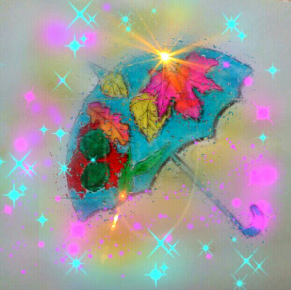 Я сижу и думаю,Что скоро, на беду мою,Мама наругает очень,Что без спроса беру срочноВещи её разные,Для неё-то важные!Я совсем не удержалась!Грустный зонтик я нашла.Он стоял, такой неяркий,У комодного стола.Тосковал по летним краскамИ мечтал о чем-то разном,О весёлом, пёстром, ясном!Я его украсила- листьями раскрасила.Это – жёлтый лист березки!Это изумруд – осина!Сбоку, алый с золотистым,Приютился клён красиво!Клея очень не жалела,Вдруг листочек отлетит?Завершила своё дело.Зонт уже не захандрит!Странно, мама не ругалась,Только весело смеялась.И теперь с таким зонтомХочет прогуляться дом,Двор, вся улица шумит —Женька-то проказница!Пусть нас тоже веселитОт праздника до праздника.Всем по зонтику на руки!!!Заиграет целый свет!Нет теперь вокруг нас скуки,Только лета ясный цвет!