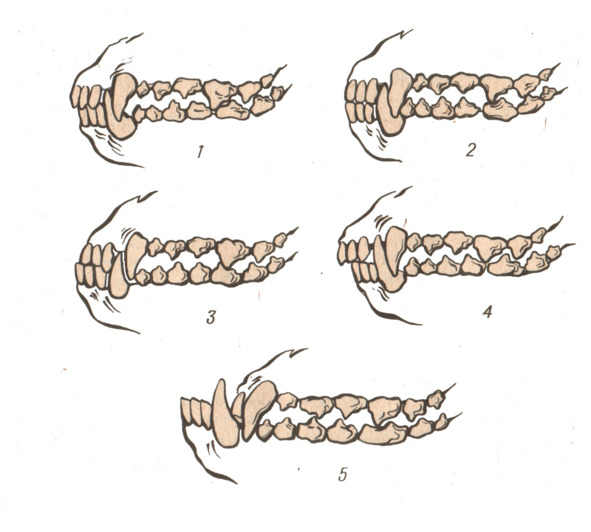 1. Нормальный, или ножницеобразный прикус, когда при смыкании челюстей нижние резцы вплотную подходят к внутренней стороне верхних резцов, Такой прикус характерен для большинства пород собак, а также волков, лис и шакалов.