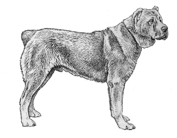 Горбатая спина встречается и при нормальном строении корпуса собаки, но в этом случае задние конечности, как правило, оттянуты назад и имеют выраженные углы сочленений. Подобных животных часто можно встретить среди современных представителей породы немецкая овчарка.