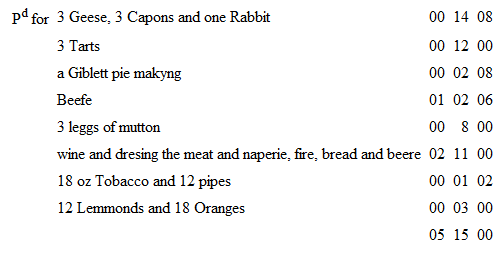 One hopes that James Beauflur made the tavern pay. This was the commencement of a long and singularly prosperous inn. It became one of the most famous inns of London, and one of the most popular for dinners. Hither came the Churchwardens and vestry of St. Olave's to feast at the expense of the parish as long as feasts were allowed. Some of the bills of these dinners have been preserved among the papers of St. Saviour's. Rendle the antiquary and historian of Southwark gives one: