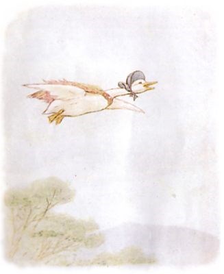 Jemima Puddle-duck was not much in the habit of flying. She ran downhill a few yards flapping her shawl, and then she jumped off into the air.