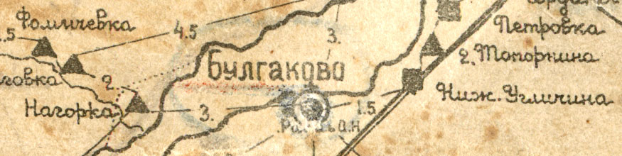 Сразу за Атаевкой возле чувашской деревни Камышлы, где была ямщицкая станция, путник переправлялся через Уршак. Оренбургский тракт тянулся на юг параллельно речке и вдоль дороги, переходя одна в другую, лежали помещичьи деревушки Гординовка, Петровка, Топорнино, Нижне-Угличинино, а через полторы версты и столица волости – Булгаково.