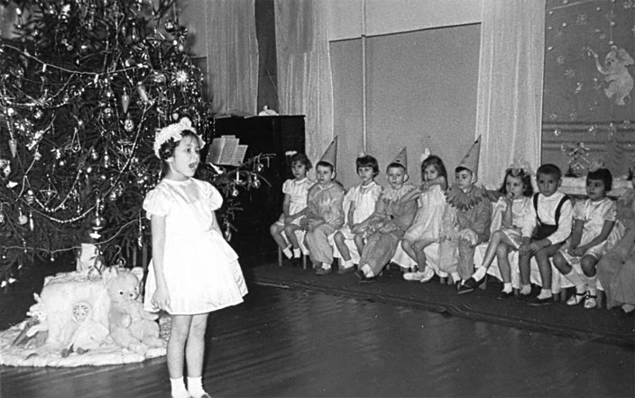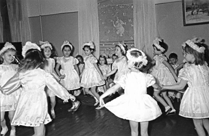В нашем семейном архиве сохранилось несколько фотографий новогоднего праздника, на котором маленькие танцевщицы выступили с концертом.