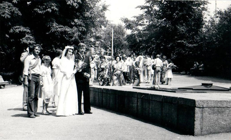 Свадебный кортеж долго ездил по городу. Снова возлагались цветы: к памятнику Ленина у горкома партии, в сквере танкистам, освободившим город, у действующего фонтана, и ещё кому-то (кажется, Ватутину).