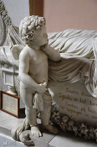В часовне Непорочного зачатия Петропавловского кафедрального костёла установлена скульптура из белого каррарского мрамора. На ложе лежит прекрасная дева, с разметавшимися по подушке волосами. Перед скульптурой можно стоять часами, заворожено смотря на это чудо. Кажется – она живая. А покрывало, накинутое на половину её тела, будто прозрачно – так робко, но явно, оно обрисовывает все изгибы её тела. Кажется – она спит. Но руки скрещены на груди, и рядом в руках маленького ангелочка – потухший факел. Да, она спит, но спит вечным сном. Рядом установлены бюсты мужчины и женщины. Один из них – бюст отца Лауры. Второй – то ли самой Лауры, то ли её сестры Марии. Внизу – упавшая книга, раскрытая на 21 странице.