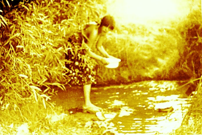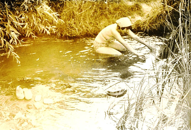 Мы решили сварить картошки. Там, где мы остановились, была запруда. Вода чистая, быстрая, но не глубоко – чуть выше щиколоток. Погрузили в воду охлаждаться арбуз, а вместо купанья приняли «ванную». Входили в ручей, ложились на пузо, и визжали что есть духу от леденящей воды.
