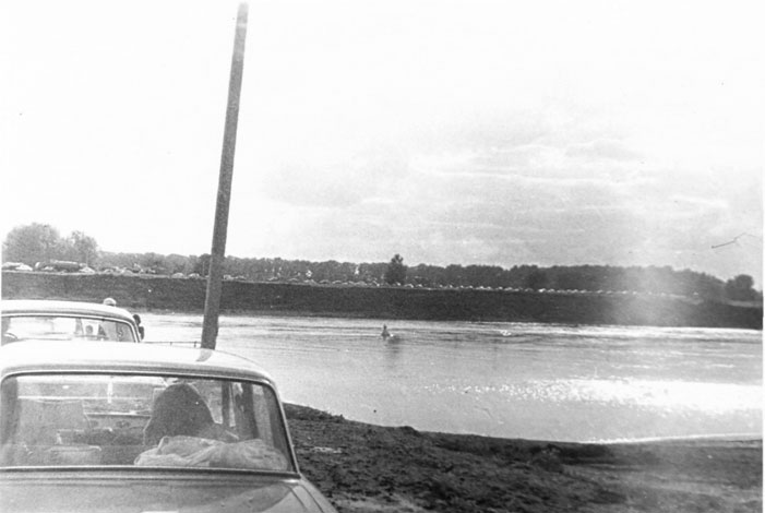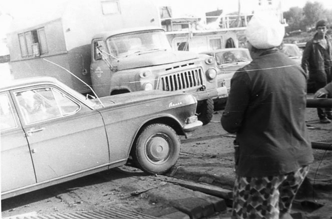 Опять – направо, через мост, а там уже будут указатели – на паром. Опять плутали, плутали… Нашли ещё одного милиционера. Убедившись, что объяснения до нас доходят трудно, он сам сел в нашу машину и путаными дорогами отвёз нас к концу длинной очереди машин на паром.