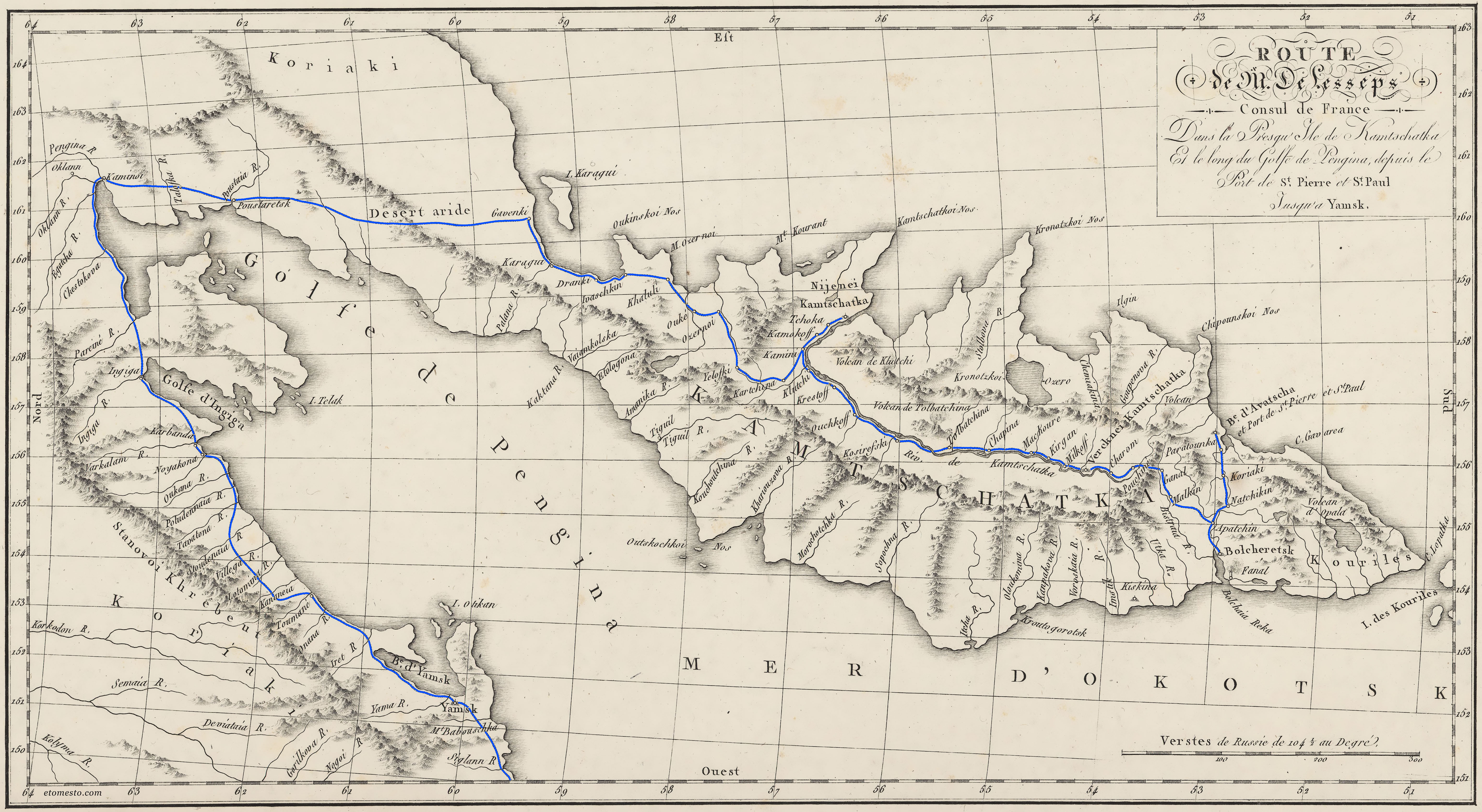 Англичане рассказывали нам, как он страдал в течение более двадцати лет от жестокости, с которой к нему относились; ему отказывали даже в самом необходимом, и он наверняка умер бы от голода и нищеты или впал в отчаяние, если бы не его ум и физическая выносливость. Необходимость обеспечить себе пропитание вынудила его не без отвращения породниться с камчадалами и целиком перенять их образ жизни. Он одевается так же, как они, и с помощью охоты и рыбной ловли может не только прокормить себя, но и имеет некоторый излишек, от продажи которого имеет те небольшие удобства, которые хоть как-то скрашивают его жалкое существование. Он проживает в Верхне-Камчатске. Русские ничего не знают о причине его столь сурового наказания; они склонны приписывать его недоразумению или каким-нибудь его неосторожным словам, ибо не верят, что он способен на преступление. Со временем, однако, произошла перемена в оценке тяжести его преступления, и недавно было сделано предложение изменить место его изгнания и переселить его в Якутск, город, в котором условия для жизни, несомненно, лучше. Но этот несчастный, которому на вид лет 60-65, отказалось воспользоваться этим разрешением, не желая, как он сказал, выставлять напоказ отвратительные следы своего бесчестья и во второй раз краснеть от ужасного наказания, которому он подвергся. Он предпочёл остаться жить с камчадалами, имея лишь одно желание – провести несколько оставшихся лет жизни с теми, кто знает о его честности, и унести с собой в могилу дружбу и уважение, которые он так справедливо заслужил.