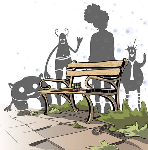 Мы снова обошли вокруг парящего дома, тщательно проверяя стены, но безуспешно. Вдруг откуда ни возьмись послышались голоса, сопровождающиеся мелодичностью и звяканьем, будто кто-то тихонько стучал хрустальными палочками. Не совсем чёткие, но довольно реальные. Из-за угла показалось два…человека? Нет, это были не люди. Звери? Тоже нет. Так кто же это? Причудливые наряды с узорами весьма неплохо вписывались в атмосферу парящего дома. Один из них поднял руки над головой, прохлопывая три раза, одновременно скручивая губы трубочкой и дуя вперёд. И всё бы ничего, как послышался звук колокольчика, а перед глазами, как по волшебству, появилась метёлка. Ну знаете, такая как у ведьм, на которых они летают. Не успели мы понять, что произошло, как метла с пассажирами взмыла в небо, отдаляясь от нас на невероятной скорости, оставляя след лёгкой мелодии.