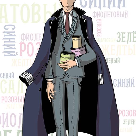 Мужчина в пальто слегка улыбнулся, отчего у глаз появились еле видные морщинки. Он держал в руках несколько баночек с красками.