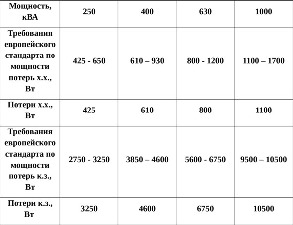 Таблица. Характеристики лучших российских трансформаторов в сравнении с европейскими требованиями.