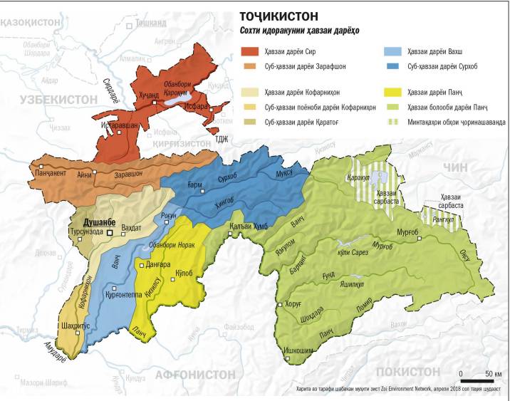 Расми 3.4. Харитаи Ҷумҳурии Тоҷикистон. Сохти идоракунии ҳавзавии дарёҳо