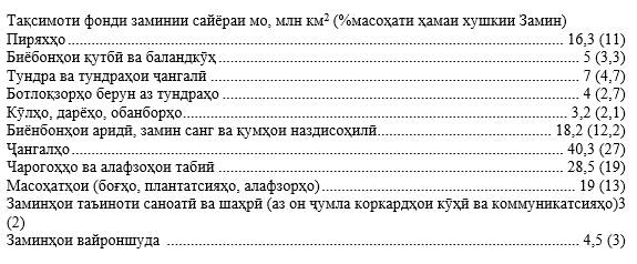 – роҳ надодан ба беасос гирифтани замини ҳосилхез аз хоҷагии қишлоқ;