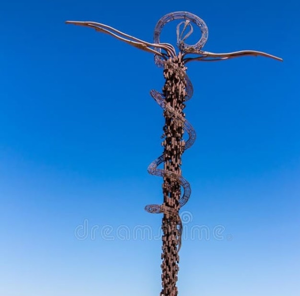 О том, что крест Моисея, в руках у девушки (скорее всего Богини), мог быть сделан как из меди, так и из ветки тёрна.