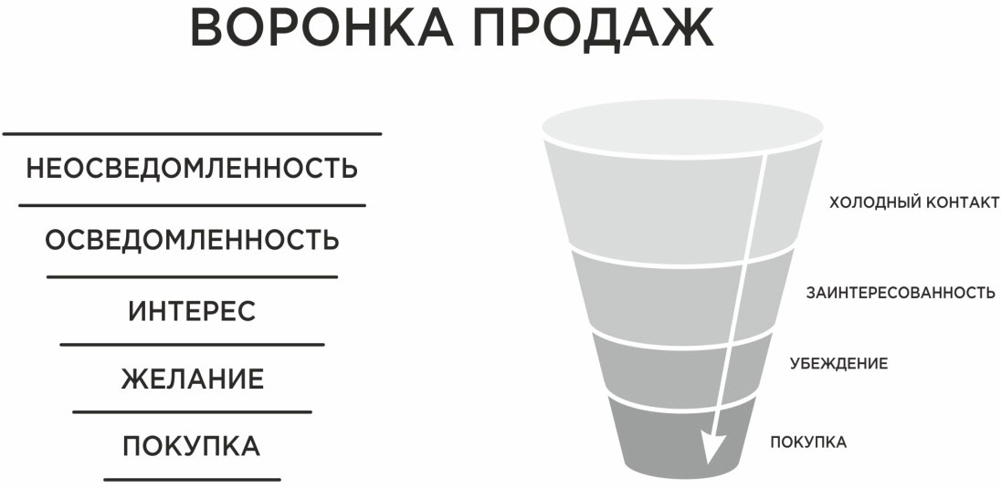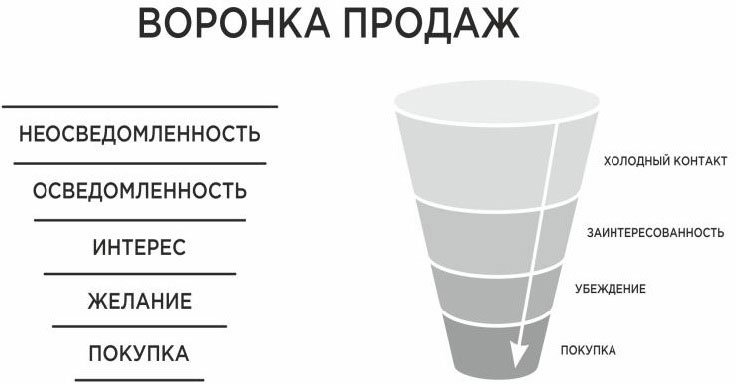 Воронка продаж дает возможность оценить эффективность вложений в маркетинг. Суть ее представим на рис. № 12.