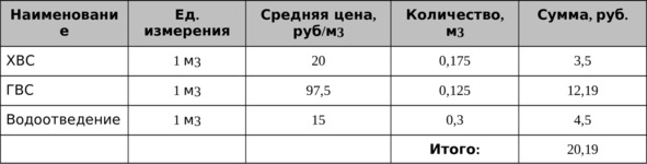 На сегодняшний день нормативное потребление воды в день 1 человеком составляет 300 литров, из которых на холодную воду приходится 175 литров, а на горячую – 125 литров, соответственно, водоотведение на 1 человека составит 300 литров. Реальное водопотребление значительно ниже, а в период отпусков отсутствует вовсе. Произведем расчет затрат: