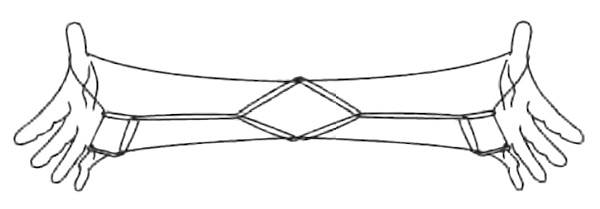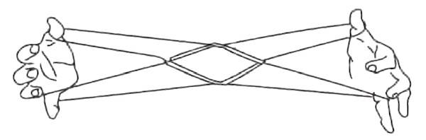 Самая популярная верёвочная фигура, с которой рассказывают эту историю на Гавайях – просто два ромба [17]. Но есть много других версий. На Маркизских островах сеть Матарики делают из двух верёвок [20]: