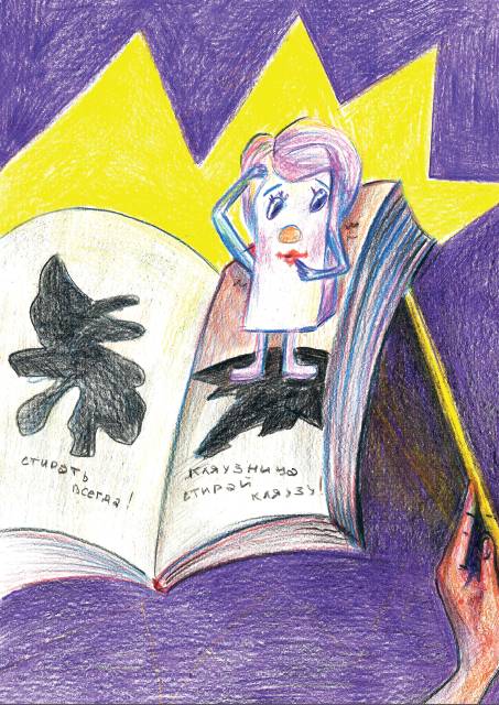 – Взять их! – крикнула Кляузница своей армии, но в ответ увидела убегающих чернильных воинов, которые с перепугу просто растекались в большие лужицы.