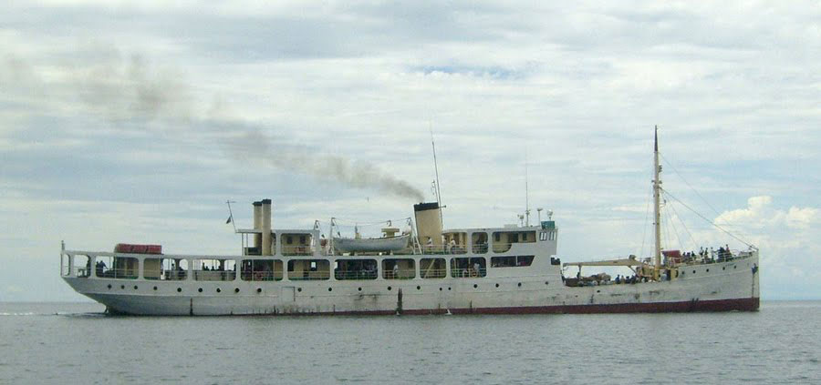 15 августа процессия длиною в несколько миль двинулась из Фунгуруме к Санкисия. 120-мильный путь давался путем невероятных усилий участников экспедиции и только 28 сентября караван достиг узкоколейки длиною в 15 миль, связывавшей Санкисию с Букамой на берегу реки Луалаба. 1 октября поезд с экспедицией прибыл на станцию Букама и катера спустили на воду. Река была мелководной и изобиловала песчаными перекатами, поэтому для уменьшения осадки к бортам катеров закрепили по восемь пустых бочек из-под бензина. Во избежание повреждения винторулевых комплексов на наиболее сложных участках реки катера буксировались гребными баржами, а припасы и разобранные трейлеры транспортировались местными каноэ, выдолбленными из цельных стволов деревьев, их грузоподъемность достигала трех тонн. На конечном участке пути катера были погружены на борт лихтера, буксировавшегося местными грузопассажирскими пароходами. 22 октября 1915 года экспедиция прибыла в Кабало, где начиналась железная дорога к берегу Танганьики. Рядом с железнодорожной станцией Кабало виднелись ржавые части большого судна. Это был “Baron Dhanis” водоизмещением 1200 (по другим данным-800) тонн, детали которого были доставлены сюда еще год назад, но сборка судна задерживалась из-за отсутствия парового котла.