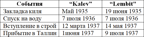 В декабре 1934 года был заключен контракт с известной британской судостроительной компанией Виккерс-Армстронг (Vickers Armstrong) в Барроу (Barrow-in-Furness), имевшей большой опыт строительства подводных лодок, на строительство двух ПЛ на общую сумму 6,6 млн. крон (360 000 фунтов стерлингов). Лодкам были присвоены названия “Kalev” в честь богатыря-героя эстонского эпоса и “Lembit” – в честь вождя эстов, возглавившего в ХII веке борьбу с немецким крестоносцами. Крестной матерью «Лембита» была Алиса Шмидт, жена эстонского посла в Великобритании.
