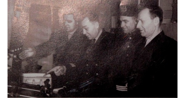 And in the photo below, four “sea wolves” cheerfully walk on the wooden flooring of the Pioneers pier. From left to right: captains V.M. Bykov, I.A. Savchuk, NI. Sizov, N.D. Ivchenko. Makeev Gennady was born in 1930. He graduated from Mamonov’s combine. In 1956 he became a senior mechanic. He sailed on many types of PBORF vessels. He went to the seas until 1987. His work experience is 45 years.
