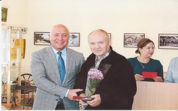 The head of the Pioneers City Administration congratulates D.G. Gritsuk, a veteran of PBORF, on his 80th birthday.