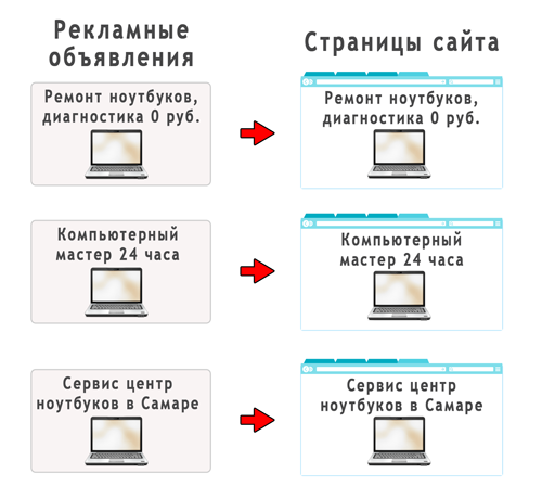 Представим ситуацию: посетителя зацепило указанное в рекламе преимущество "гарантия 2 года", но перейдя по рекламе на ваш сайт, он не видит этого на первом экране. Остальные преимущества ему неинтересны, т.к. он уже нашел несколько подходящих сайтов ваших конкурентов, где есть все остальное, написанное на текущей странице.