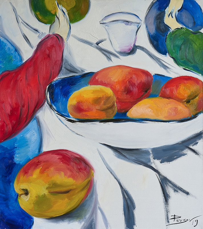 Ripe peaches. 2019. Canvas, oil. 90x80 cm