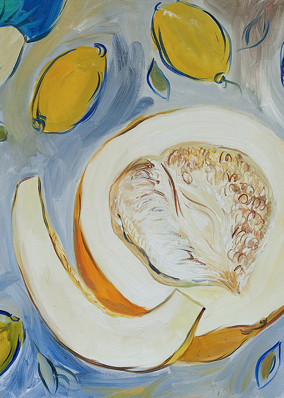 A melon and lemons. 2019. Canvas, oil. 70x90 cm