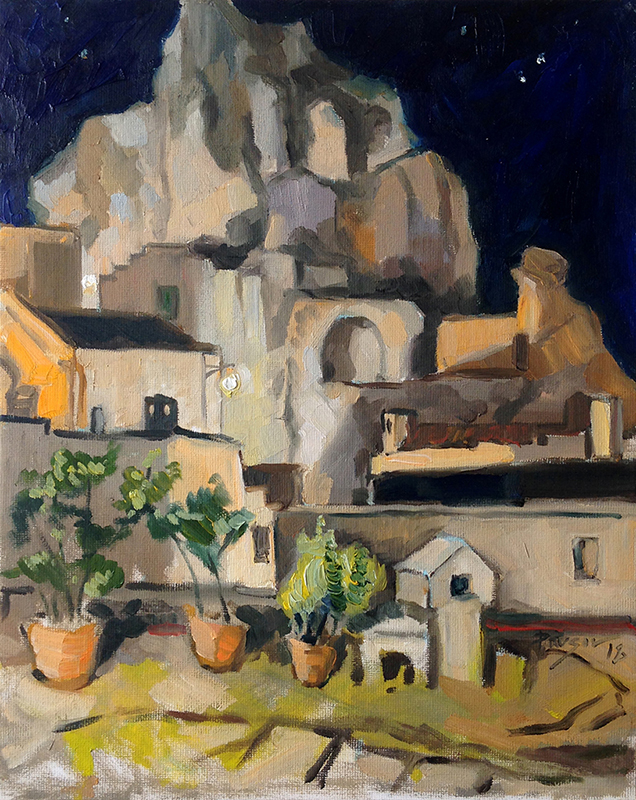 Secrets of night streets. Matera. 2018.Canvas on cardboard, oil. 30x24 cm