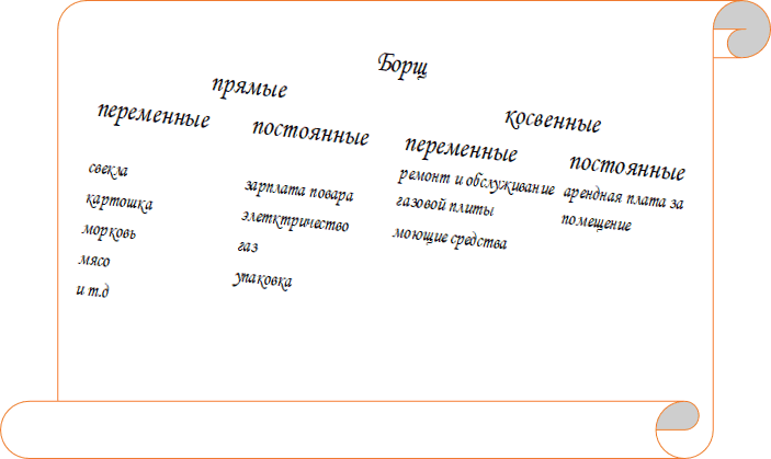 Ингредиенты супа: свекла, картошка, морковь и т. д. – это прямые затраты. Они же будут переменными, так как их количество зависит от объема готового борща. Чем больше надо борща, тем больше свеклы, мяса, картошки и прочего потребуется.