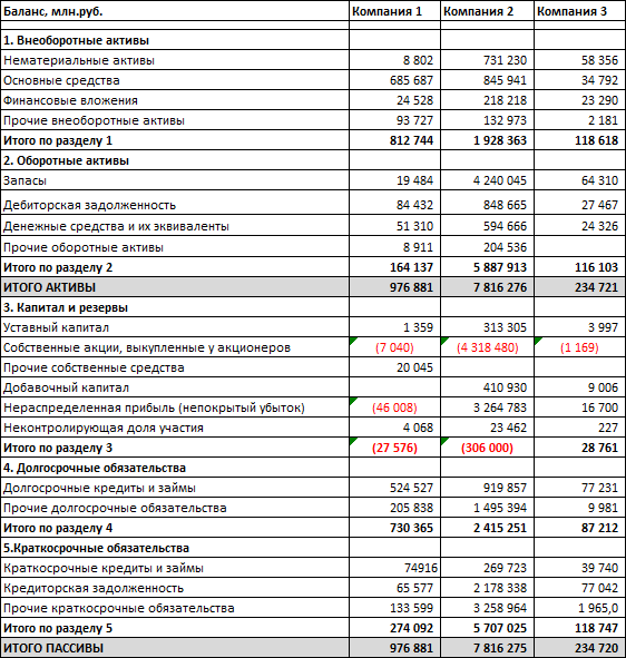ЗаданиеРассмотрите данные бухгалтерских балансов трех компаний.