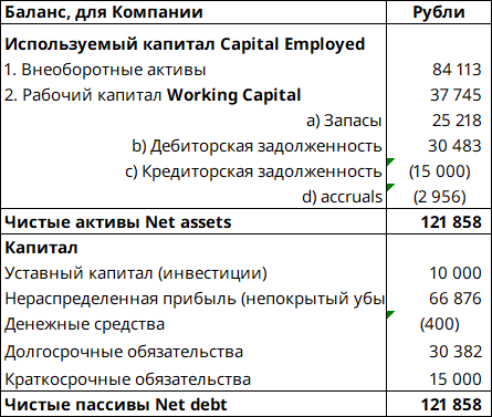Используемый капитал ещё называют “чистыми активами” (Net assets), частью которых является рабочий капитал (working capital).